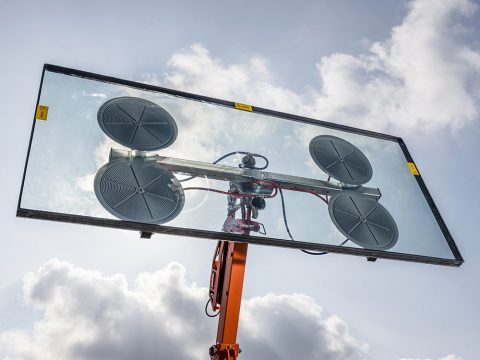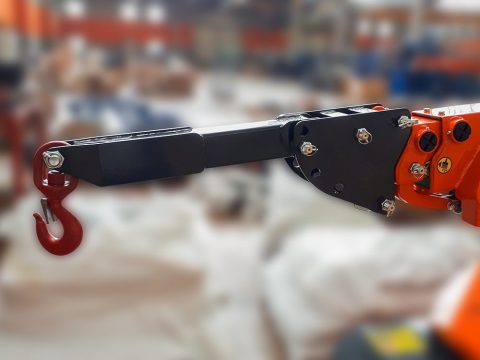 The only 2,182 lb minipicker whose main column can rotate 9° on each side. MPK10 can be equipped with a manipulator with suction caps or in hook mode in compliance with EN13000 regulation.