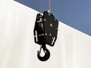 This switch prevents the hook from blocking or from being pulled against the boom end.