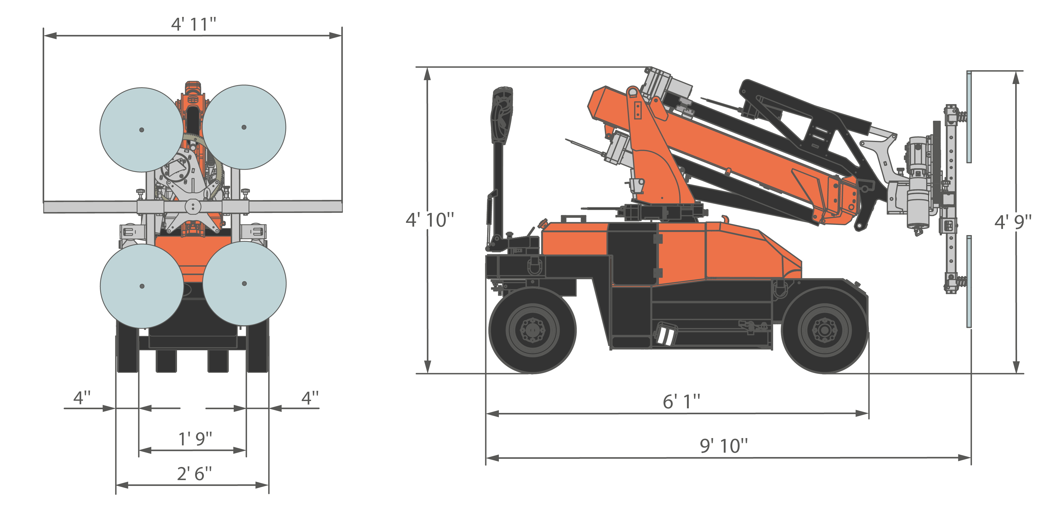 The machine can move on its tracks while the load is lifted up.