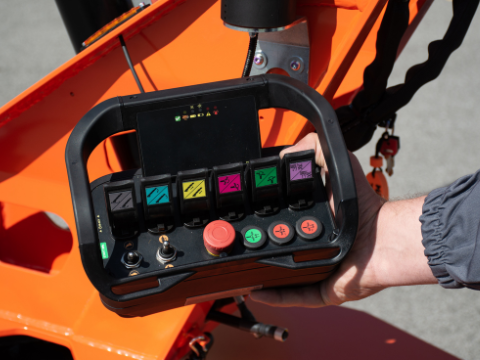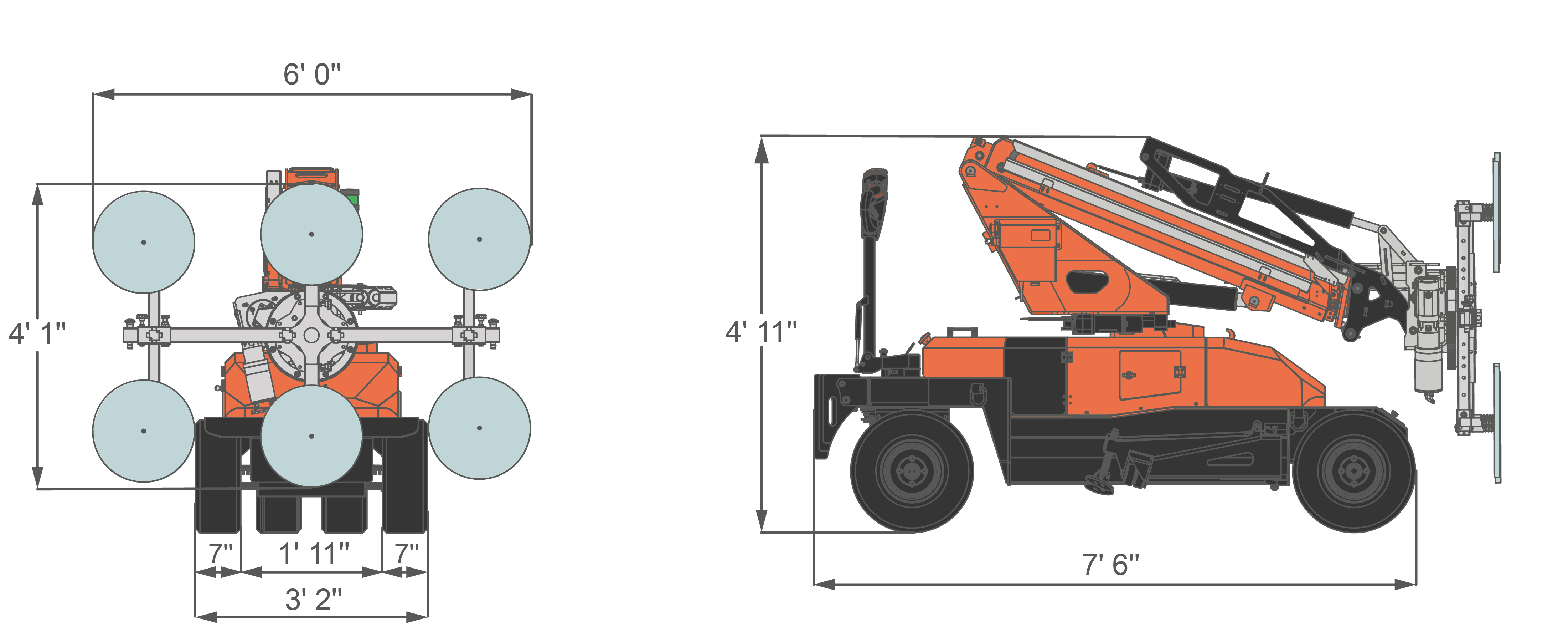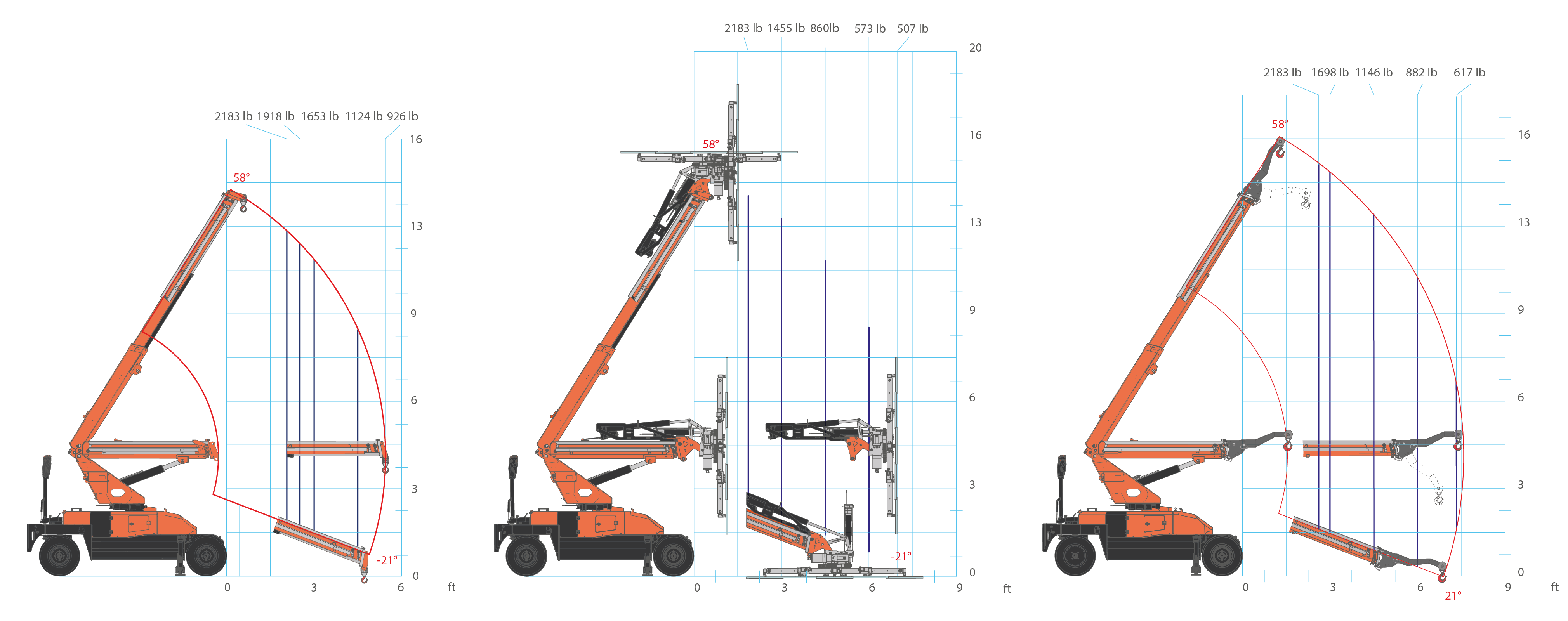 The only 2,182 lb minipicker whose main column can rotate 9° on each side. MPK10 can be equipped with a manipulator with suction caps or in hook mode in compliance with EN13000 regulation.